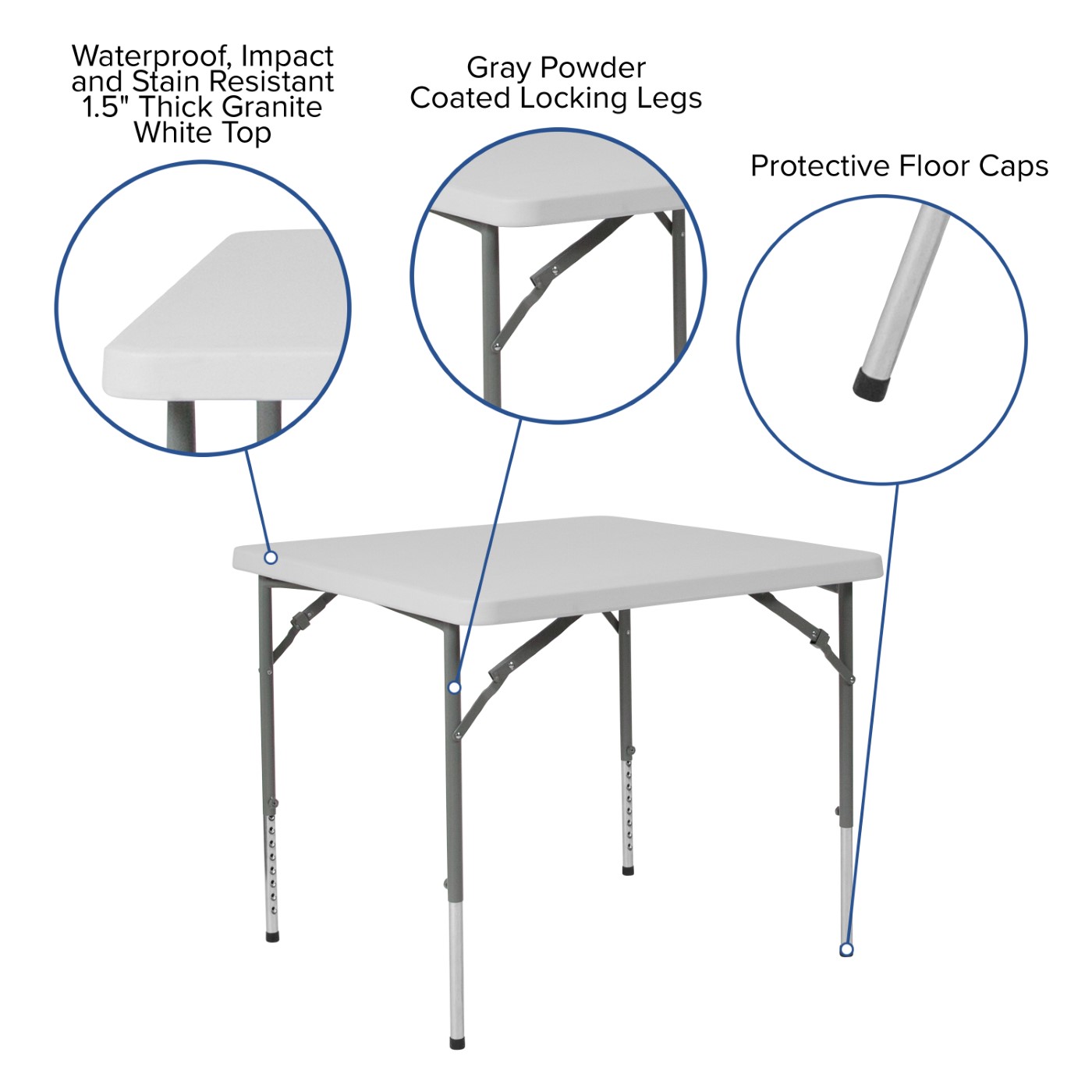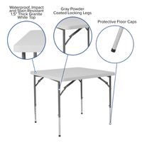 2.79-FOOT SQUARE HEIGHT ADJUSTABLE GRANITE WHITE PLASTIC FOLDING TABLE