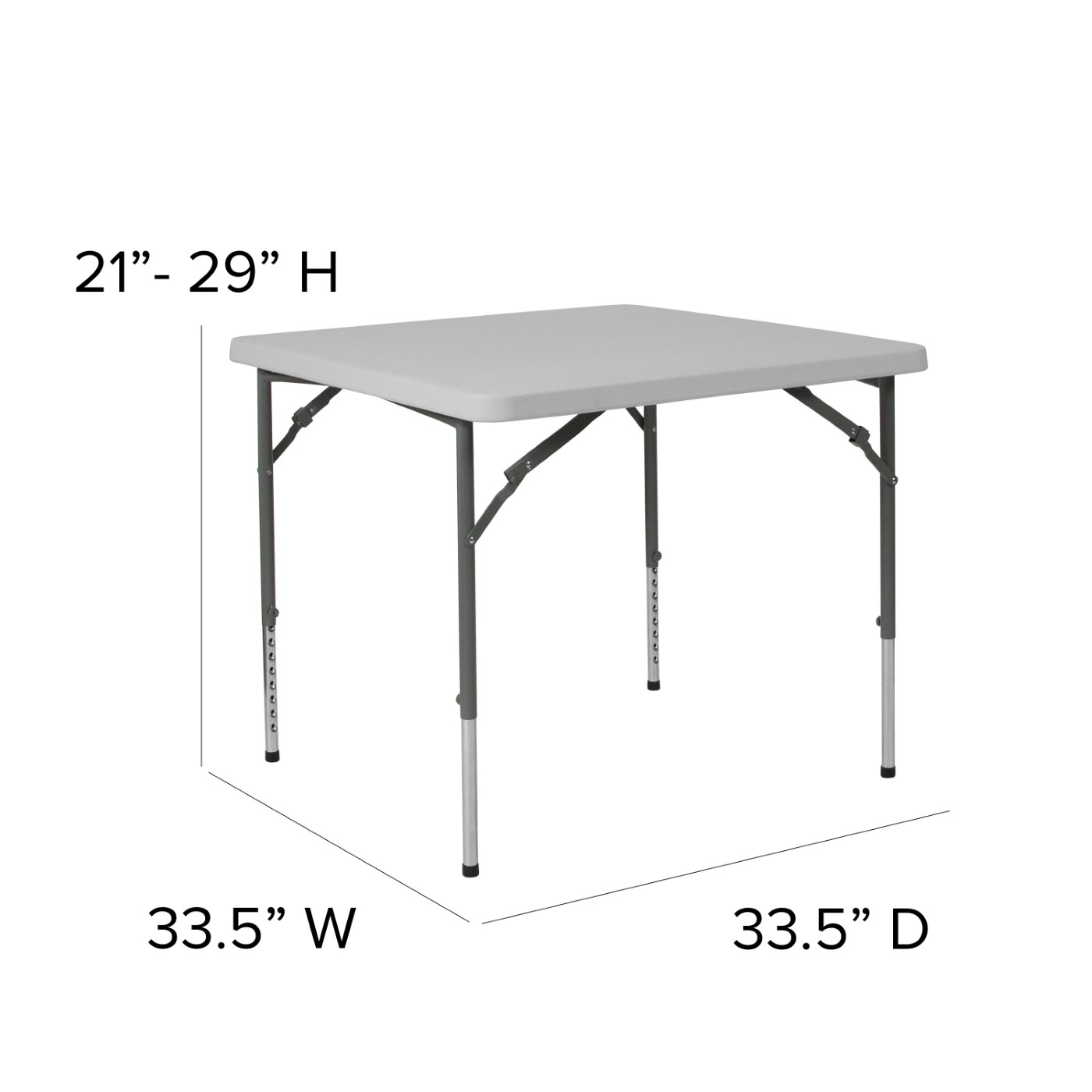 - Overall Dimensions: 33.5"W x 33.5"D x 21" - 29"H