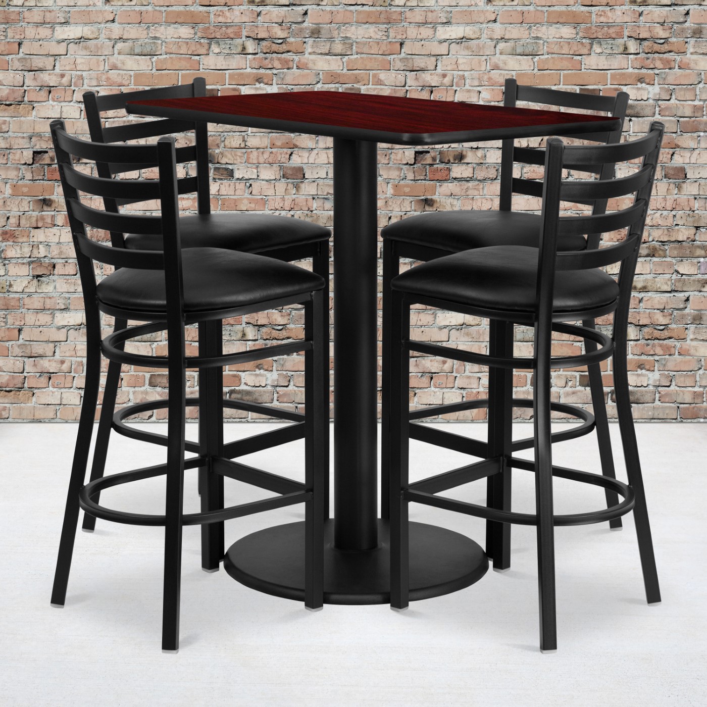 24'' X 42'' RECTANGULAR MAHOGANY LAMINATE TABLE SET WITH 4 LADDER BACK METAL BARSTOOLS - BLACK VINYL SEAT: FREE SHIPPING!