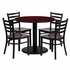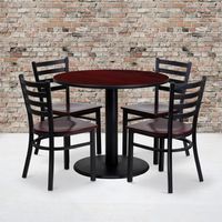 36'' ROUND MAHOGANY LAMINATE TABLE SET WITH 4 LADDER BACK METAL CHAIRS - MAHOGANY WOOD SEAT