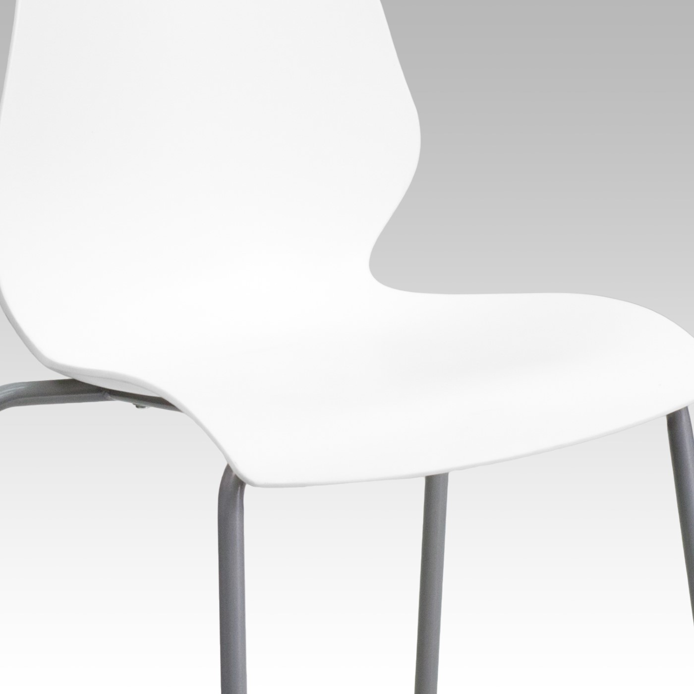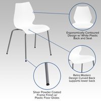 TOUGH ENOUGH SERIES 770 LB. CAPACITY WHITE STACK CHAIR WITH LUMBAR SUPPORT AND SILVER FRAME
