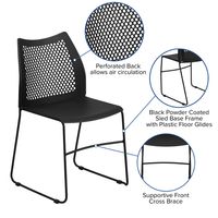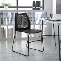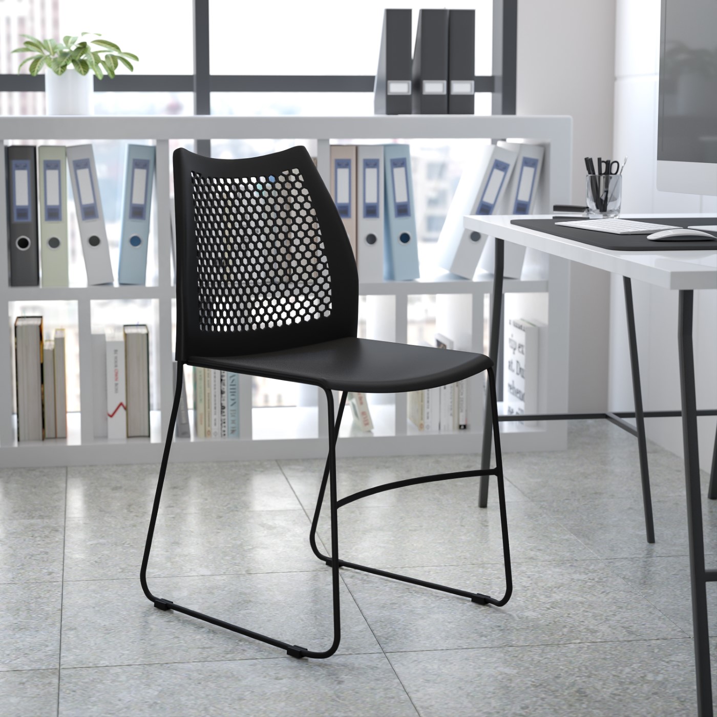 TOUGH ENOUGH SERIES 661 LB. CAPACITY BLACK STACK CHAIR WITH AIR-VENT BACK AND BLACK POWDER COATED SLED BASE