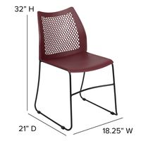 TOUGH ENOUGH SERIES 661 LB. CAPACITY BURGUNDY STACK CHAIR WITH AIR-VENT BACK AND BLACK POWDER COATED SLED BASE