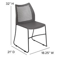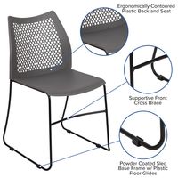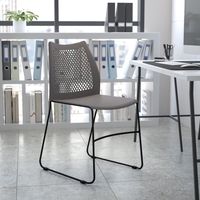 TOUGH ENOUGH SERIES 661 LB. CAPACITY GRAY STACK CHAIR WITH AIR-VENT BACK AND BLACK POWDER COATED SLED BASE