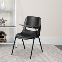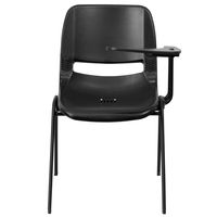 BLACK ERGONOMIC SHELL CHAIR WITH LEFT HANDED FLIP-UP TABLET ARM