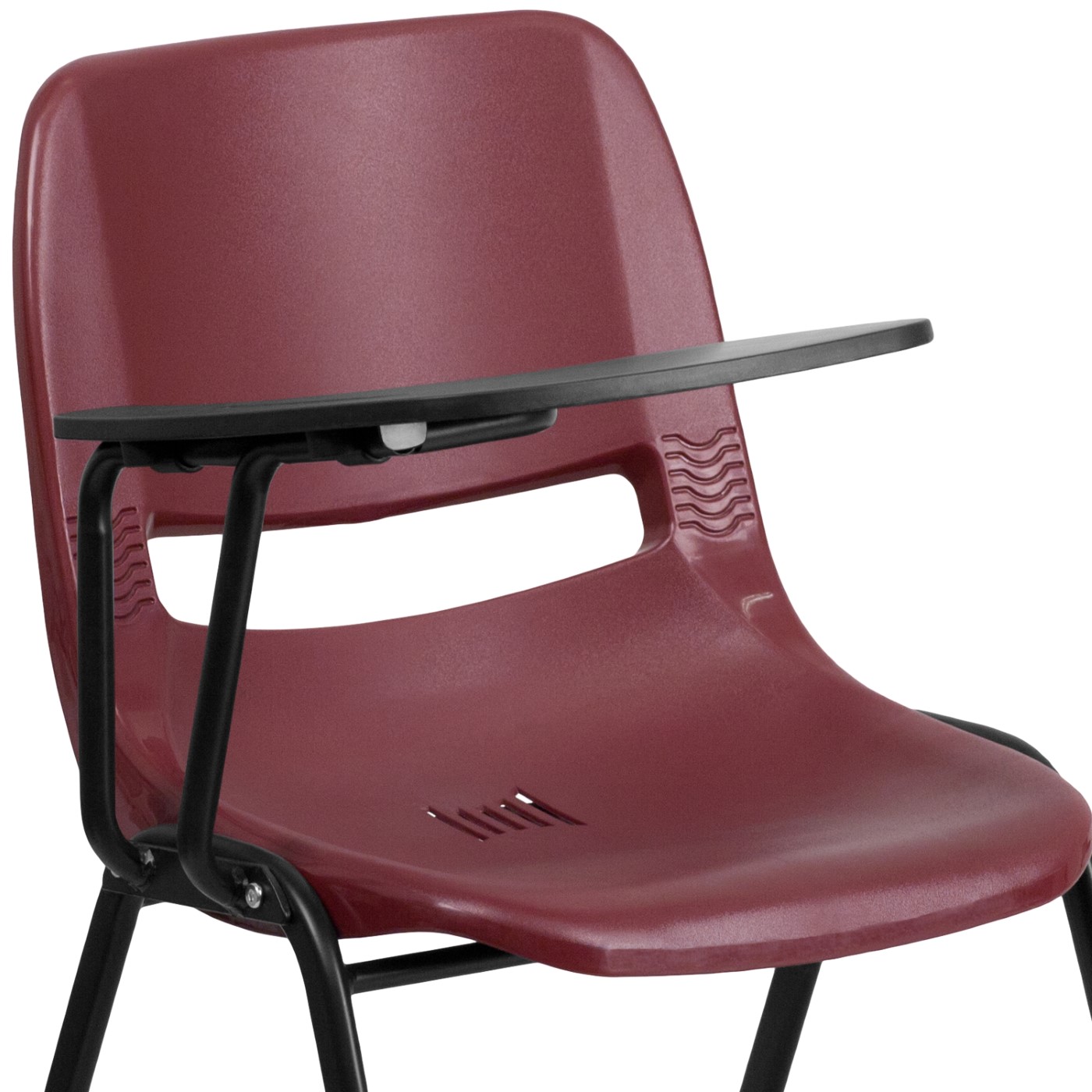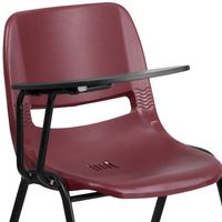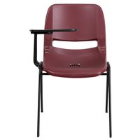 BURGUNDY ERGONOMIC SHELL CHAIR WITH RIGHT HANDED FLIP-UP TABLET ARM