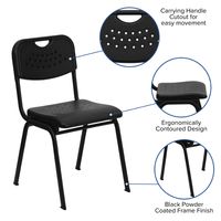TOUGH ENOUGH SERIES 880 LB. CAPACITY BLACK PLASTIC STACK CHAIR WITH OPEN BACK AND BLACK FRAME