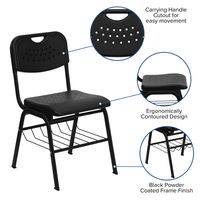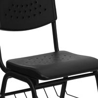 TOUGH ENOUGH SERIES 880 LB. CAPACITY BLACK PLASTIC CHAIR WITH BLACK FRAME AND BOOK BASKET