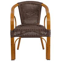 CADIZ SERIES DARK BROWN RATTAN RESTAURANT PATIO CHAIR WITH RED BAMBOO-ALUMINUM FRAME