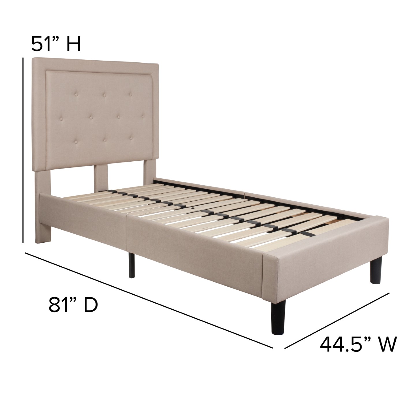 ROXBURY TWIN SIZE TUFTED UPHOLSTERED PLATFORM BED IN BEIGE FABRIC: FREE SHIPPING!