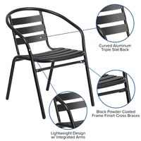 BLACK METAL RESTAURANT STACK CHAIR WITH ALUMINUM SLATS