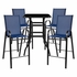 OUTDOOR DINING SET - 4-PERSON BISTRO SET - OUTDOOR GLASS BAR TABLE WITH NAVY ALL-WEATHER PATIO STOOLS