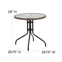 - Round Table: Top Size: 28" Round, 5mm Thick Glass, 1.25" Edge Top, Decorative Black Rattan Edge Band