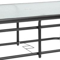 31.5" X 55" RECTANGULAR TEMPERED GLASS METAL TABLE WITH UMBRELLA HOLE