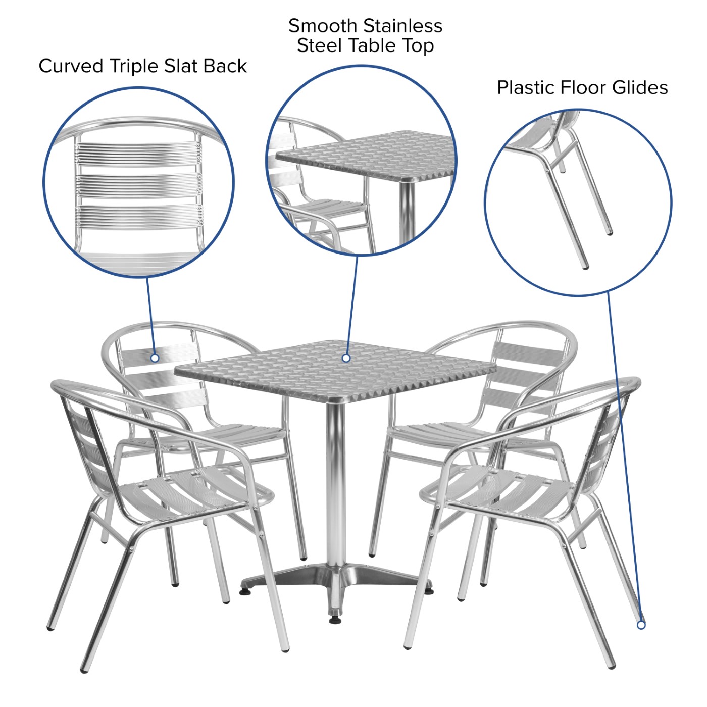 27.5'' SQUARE ALUMINUM INDOOR-OUTDOOR TABLE SET WITH 4 SLAT BACK CHAIRS