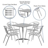27.5'' SQUARE ALUMINUM INDOOR-OUTDOOR TABLE SET WITH 4 SLAT BACK CHAIRS: FREE SHIPPING!