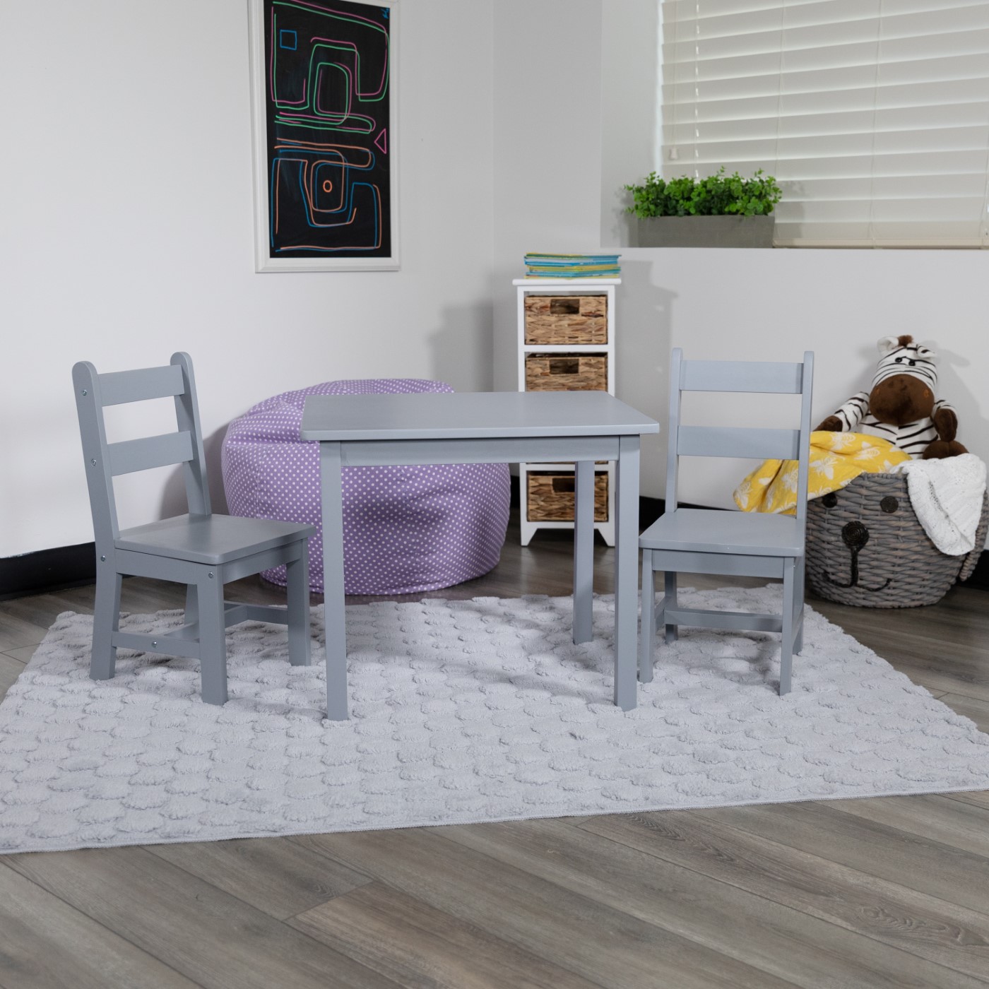 KIDS SOLID HARDWOOD TABLE AND CHAIR SET FOR PLAYROOM, BEDROOM, KITCHEN - 3 PIECE SET - GRAY