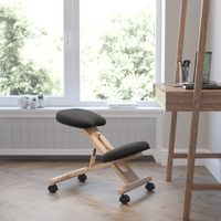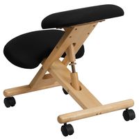 MOBILE WOODEN ERGONOMIC KNEELING OFFICE CHAIR IN BLACK FABRIC: FREE SHIPPING!