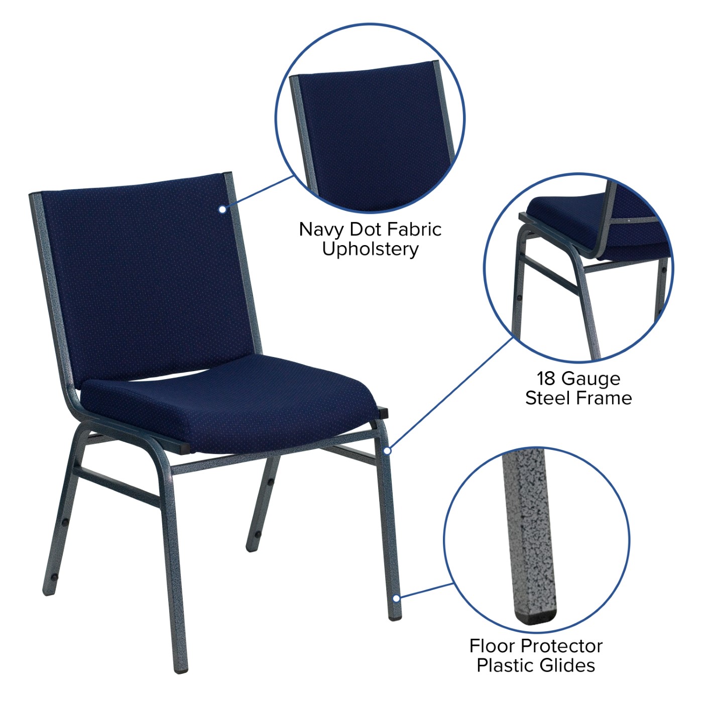TOUGH ENOUGH SERIES HEAVY DUTY NAVY BLUE DOT FABRIC STACK CHAIR FREE SHIPPING!