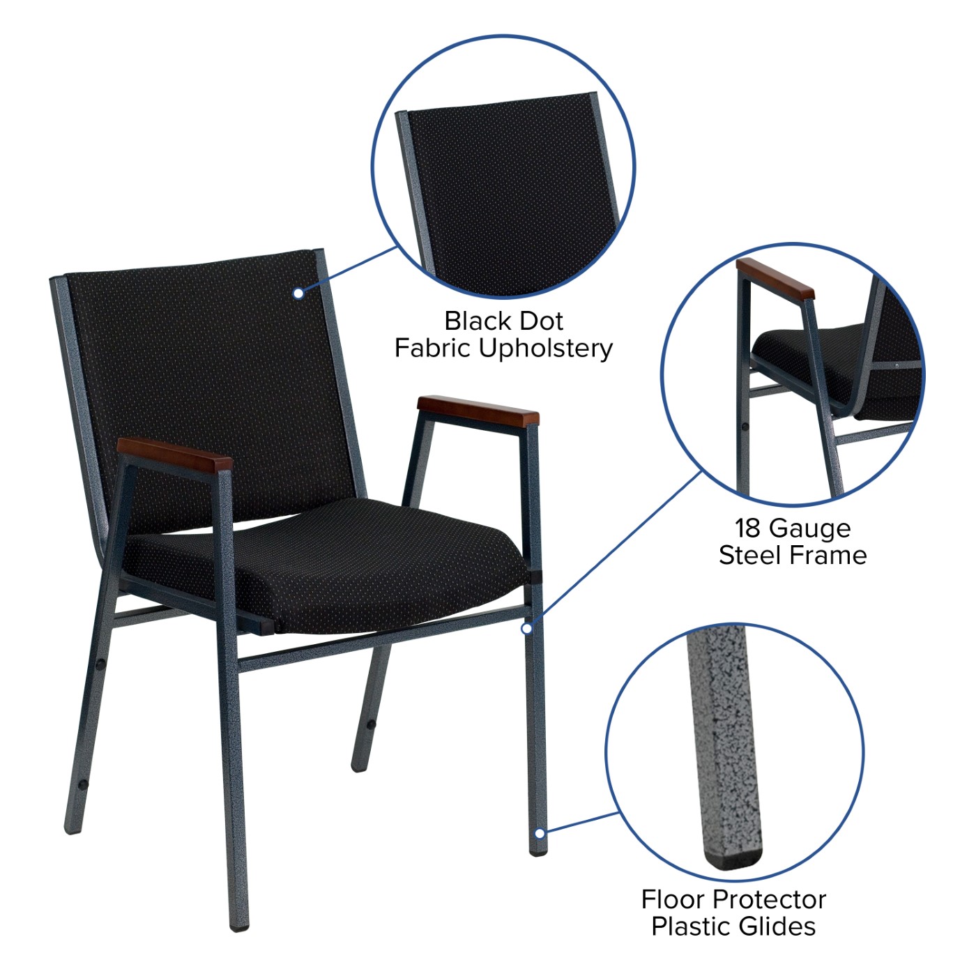 TOUGH ENOUGH SERIES HEAVY DUTY BLACK DOT FABRIC STACK CHAIR WITH ARMS FREE SHIPPING!