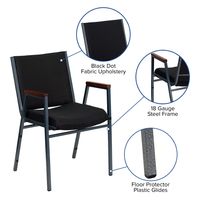 TOUGH ENOUGH SERIES HEAVY DUTY BLACK DOT FABRIC STACK CHAIR WITH ARMS