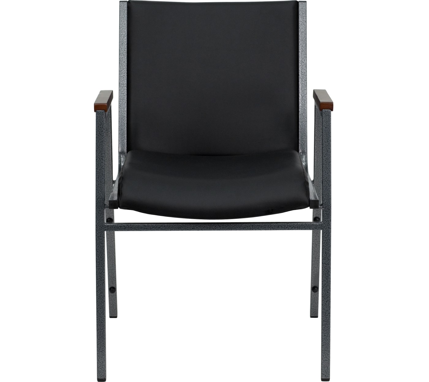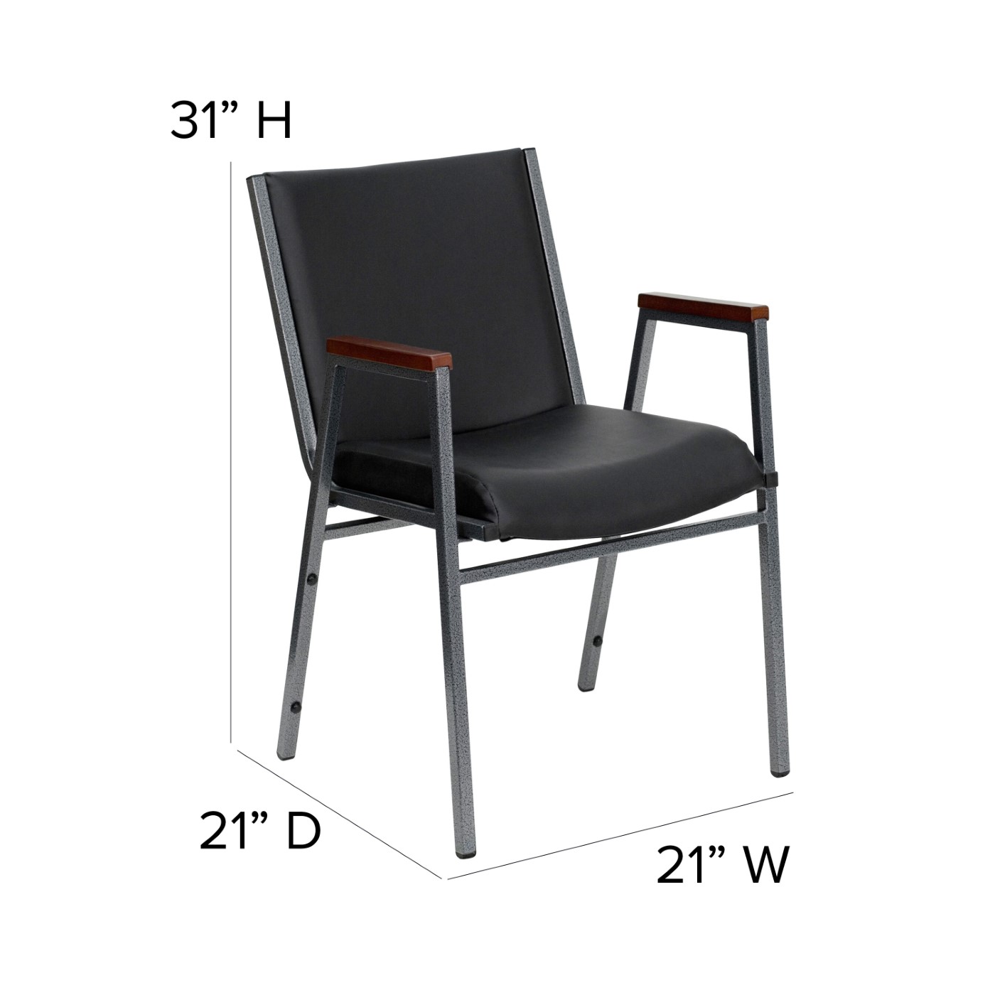 TOUGH ENOUGH SERIES HEAVY DUTY BLACK VINYL STACK CHAIR WITH ARMS