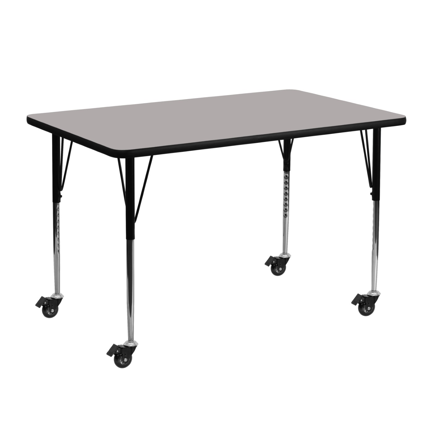 MOBILE 24''W X 48''L RECTANGULAR GREY HP LAMINATE ACTIVITY TABLE - STANDARD HEIGHT ADJUSTABLE LEGS