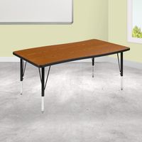 28"W X 47.5"L RECTANGULAR WAVE FLEXIBLE COLLABORATIVE OAK THERMAL LAMINATE ACTIVITY TABLE - HEIGHT ADJUSTABLE SHORT LEGS: FREE SHIPPING!