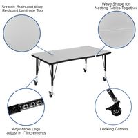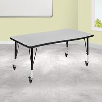 MOBILE 28"W X 47.5"L RECTANGULAR WAVE FLEXIBLE COLLABORATIVE GREY LAMINATE ACTIVITY TABLE - HEIGHT ADJUSTABLE SHORT LEGS FREE SHIPPING!