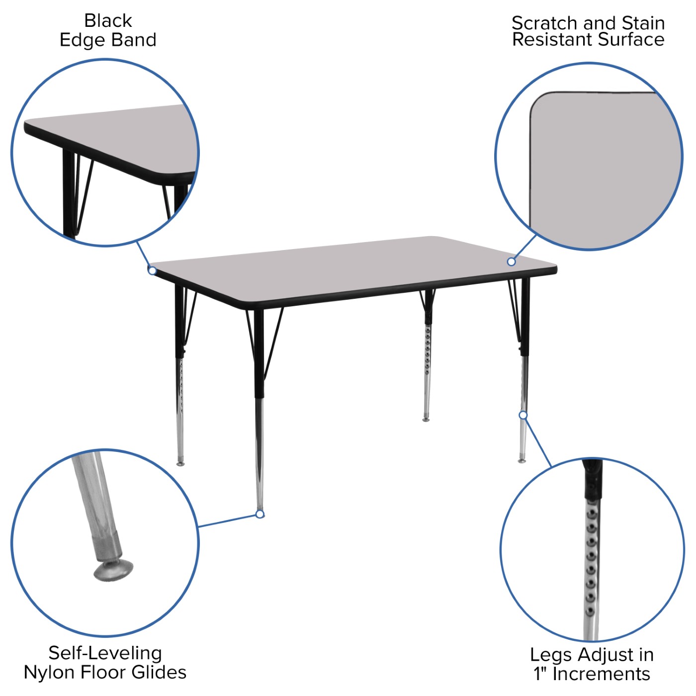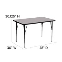 30''W X 48''L RECTANGULAR GREY THERMAL LAMINATE ACTIVITY TABLE - STANDARD HEIGHT ADJUSTABLE LEGS