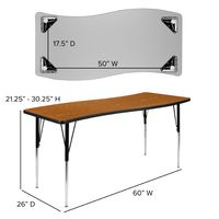26"W X 60"L RECTANGULAR WAVE FLEXIBLE COLLABORATIVE OAK THERMAL LAMINATE ACTIVITY TABLE - STANDARD HEIGHT ADJUSTABLE LEGS FREE SHIPPING!