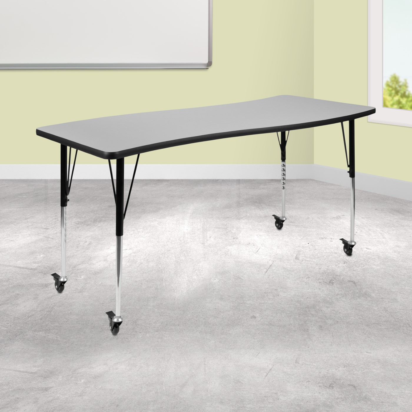 MOBILE 26"W X 60"L RECTANGULAR WAVE FLEXIBLE COLLABORATIVE GREY LAMINATE ACTIVITY TABLE - STANDARD HEIGHT ADJUSTABLE LEGS FREE SHIPPING!