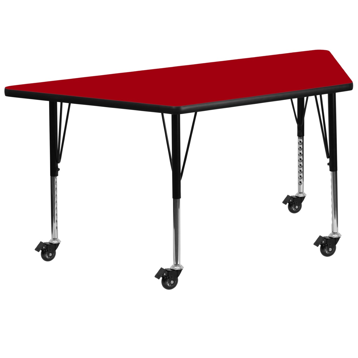 MOBILE 29''W X 57''L TRAPEZOID RED THERMAL LAMINATE ACTIVITY TABLE - HEIGHT ADJUSTABLE SHORT LEGS