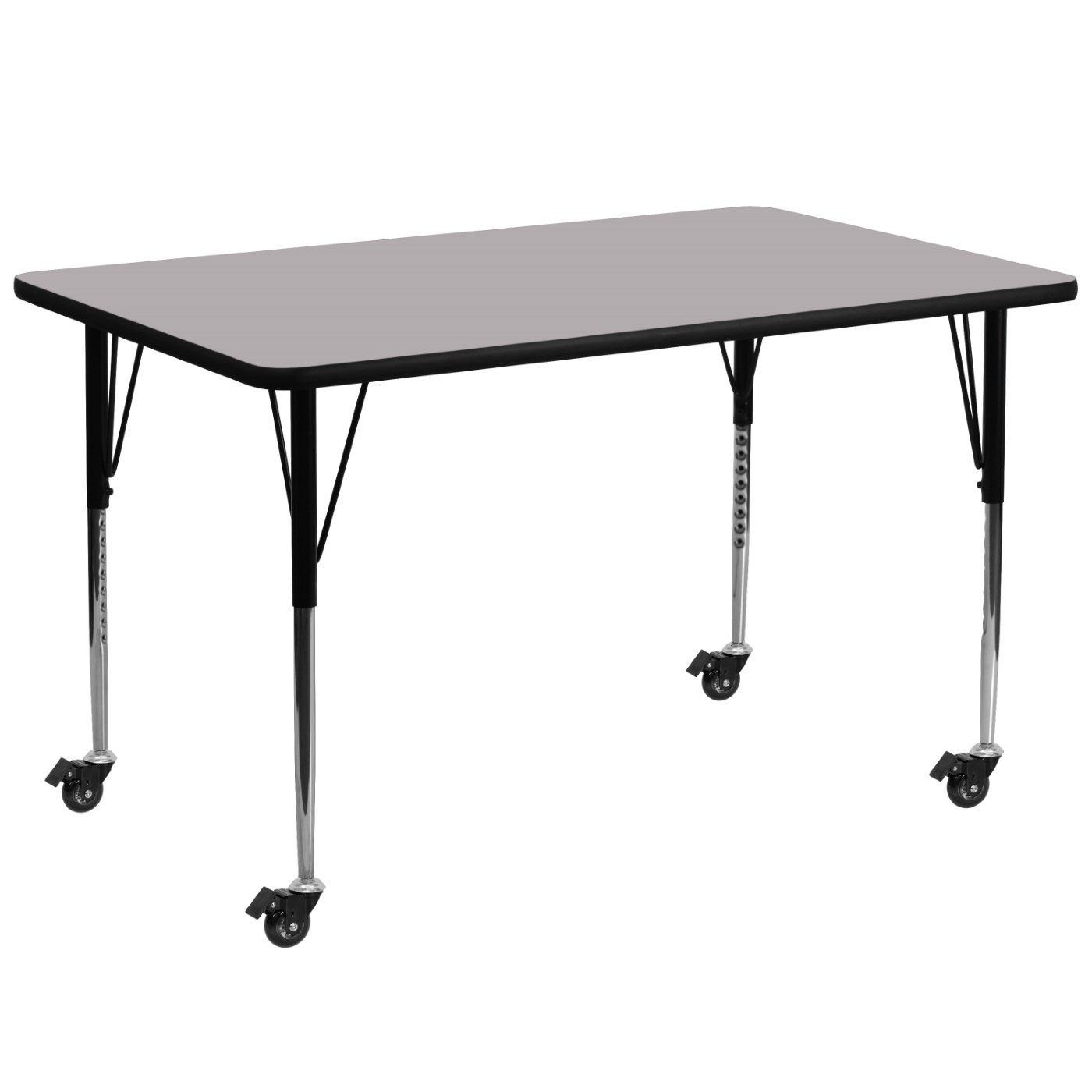 MOBILE 30''W X 72''L RECTANGULAR GREY THERMAL LAMINATE ACTIVITY TABLE - STANDARD HEIGHT ADJUSTABLE LEGS