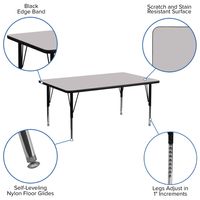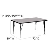 30''W X 72''L RECTANGULAR GREY THERMAL LAMINATE ACTIVITY TABLE - HEIGHT ADJUSTABLE SHORT LEGS