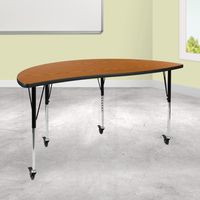 MOBILE 60" HALF CIRCLE WAVE FLEXIBLE COLLABORATIVE OAK THERMAL LAMINATE ACTIVITY TABLE - STANDARD HEIGHT ADJUSTABLE LEGS FREE SHIPPING!