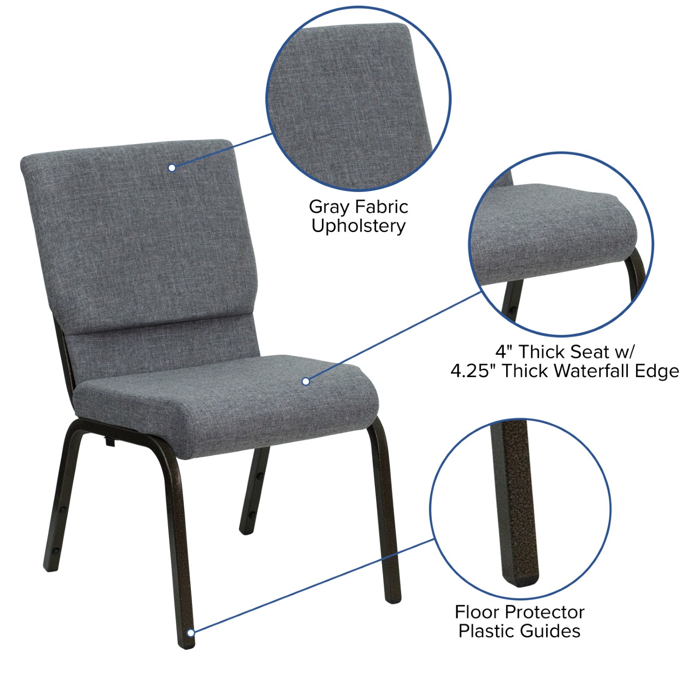 TOUGH ENOUGH SERIES 18.5''W STACKING CHURCH CHAIR IN GRAY FABRIC - GOLD VEIN FRAME: FREE SHIPPING!
