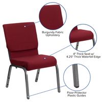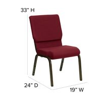 TOUGH ENOUGH SERIES 18.5''W STACKING CHURCH CHAIR IN BURGUNDY FABRIC - GOLD VEIN FRAME: FREE SHIPPING!