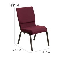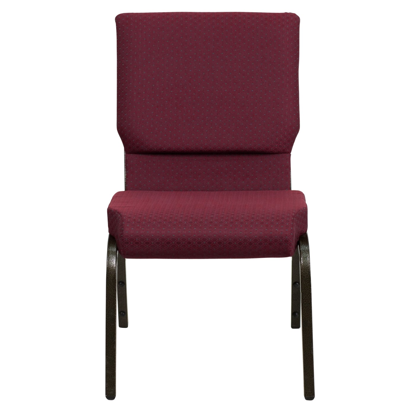 TOUGH ENOUGH SERIES 18.5''W STACKING CHURCH CHAIR IN BURGUNDY PATTERNED FABRIC - GOLD VEIN FRAME