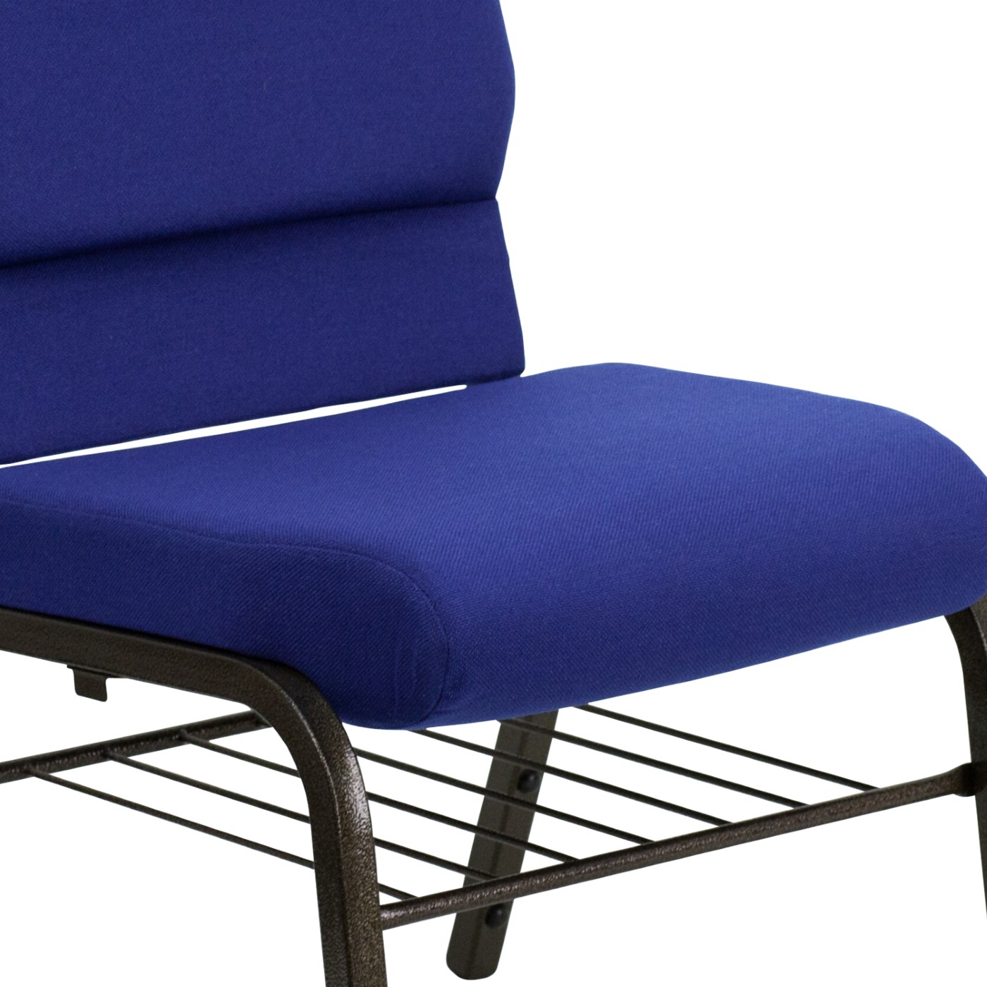 TOUGH ENOUGH SERIES 18.5''W STACKING CHURCH CHAIR IN NAVY BLUE FABRIC - GOLD VEIN FRAME: FREE SHIPPING!