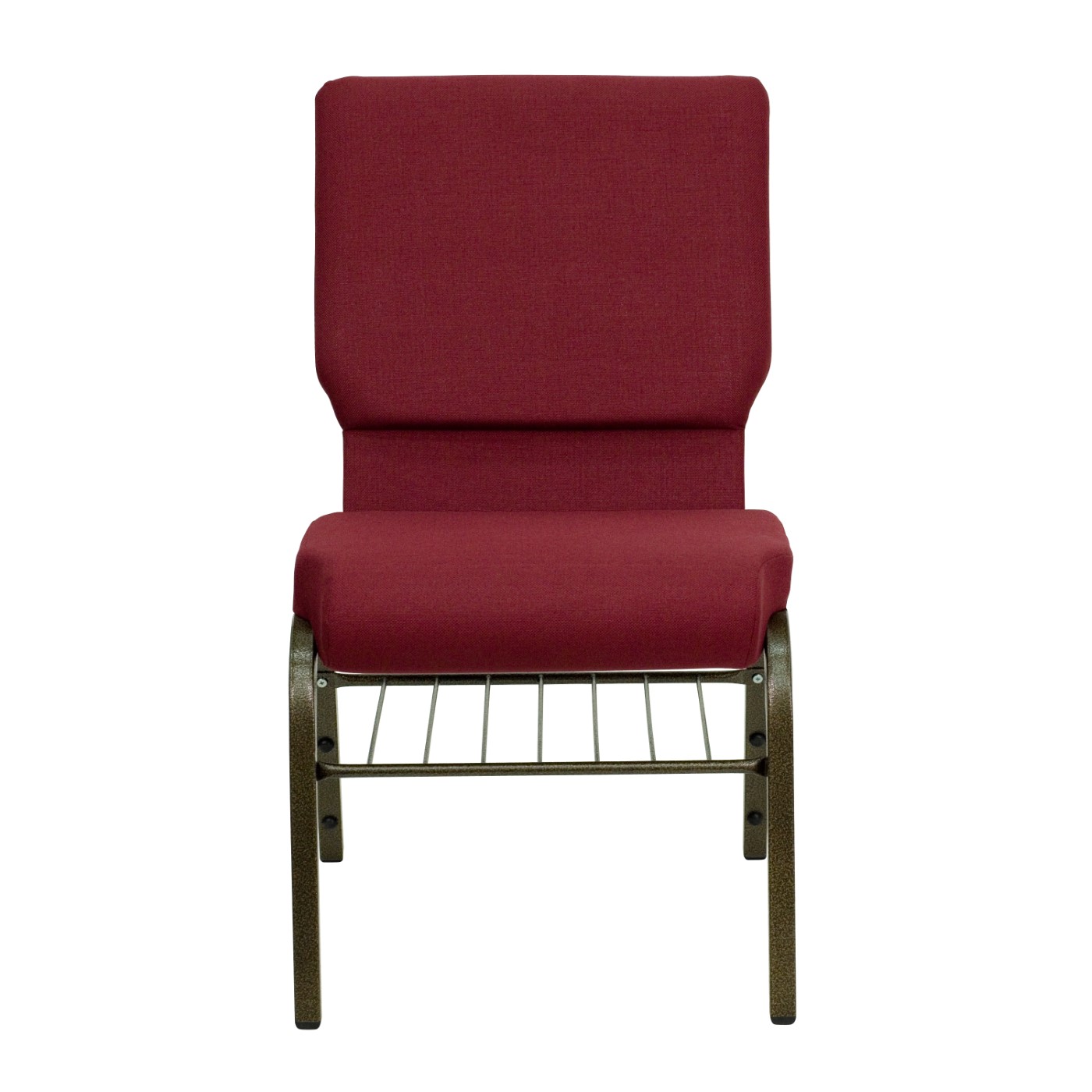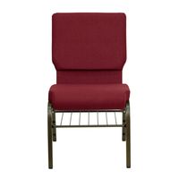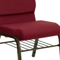 TOUGH ENOUGH SERIES 18.5''W CHURCH CHAIR IN BURGUNDY FABRIC WITH BOOK RACK - GOLD VEIN FRAME: FREE SHIPPING!