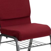 TOUGH ENOUGH SERIES 18.5''W CHURCH CHAIR IN BURGUNDY FABRIC WITH BOOK RACK - SILVER VEIN FRAME: FREE SHIPPING!