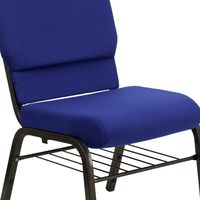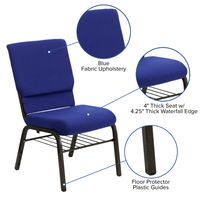 TOUGH ENOUGH SERIES 18.5''W CHURCH CHAIR IN NAVY BLUE FABRIC WITH BOOK RACK - GOLD VEIN FRAME: FREE SHIPPING!