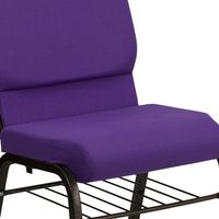 TOUGH ENOUGH SERIES 18.5''W CHURCH CHAIR IN PURPLE FABRIC WITH BOOK RACK - GOLD VEIN FRAME: FREE SHIPPING!