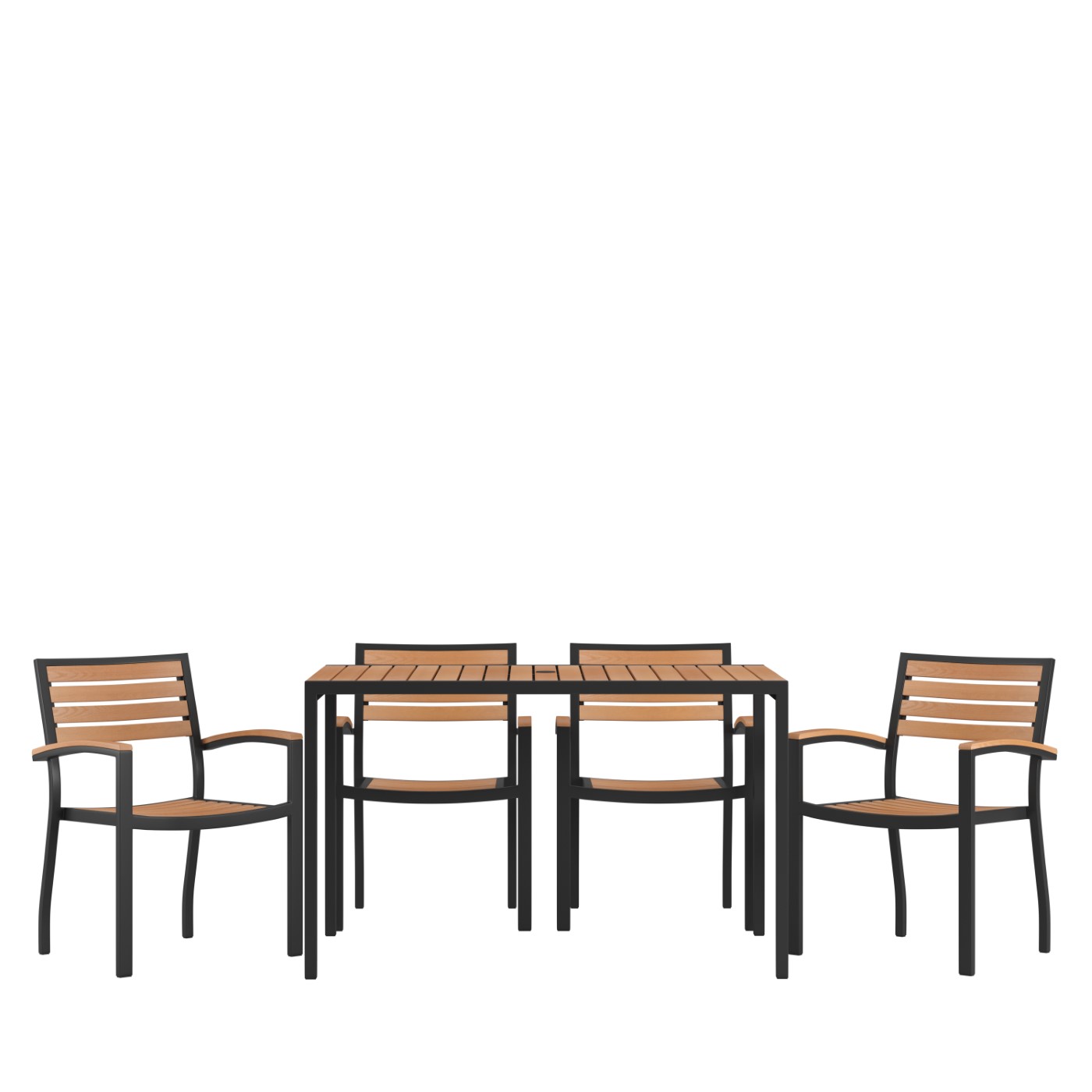 - 5 Piece Faux Teak Patio Table and 4 Chair Set for residential or commercial use
