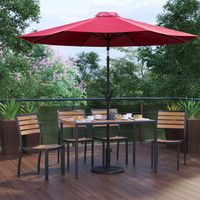 - All-Weather Faux Teak Patio Table & 4 Chair Set with Umbrella and Base
