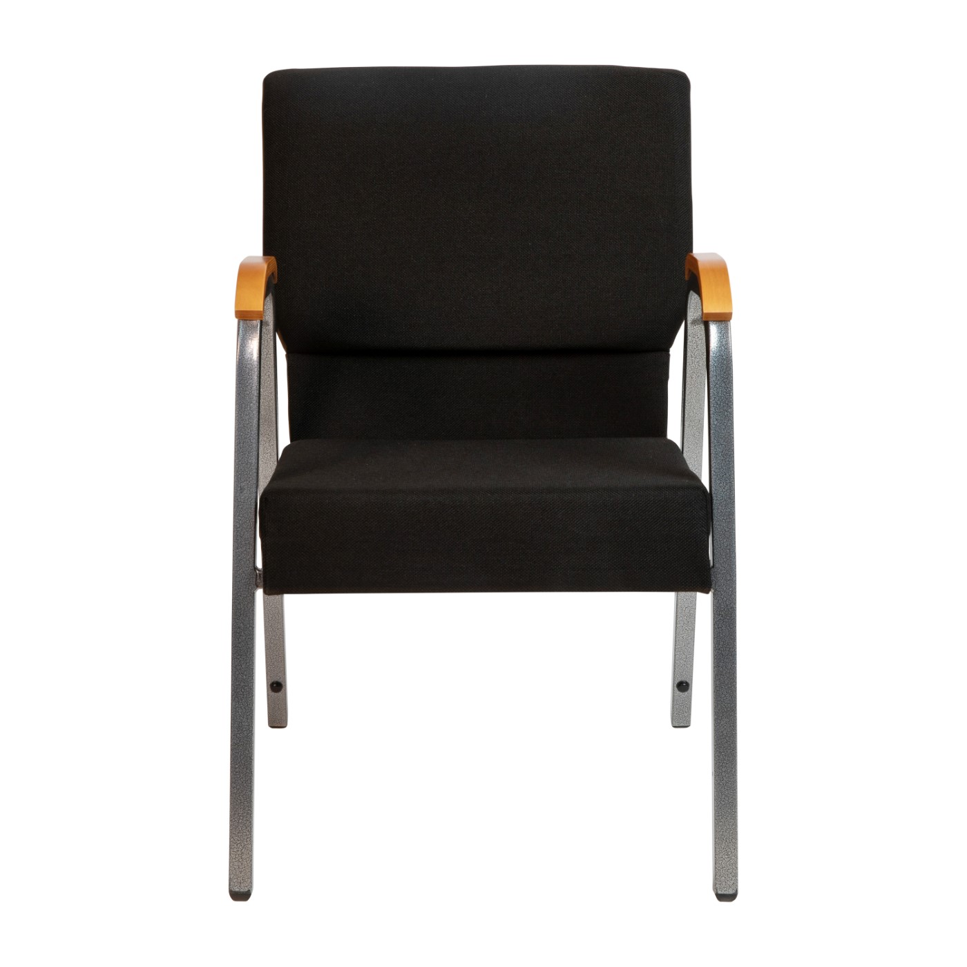 TOUGH ENOUGH SERIES 21"W STACKING WOOD ACCENT ARM CHURCH CHAIR IN BLACK FABRIC - SILVER VEIN FRAME: FREE SHIPPING!