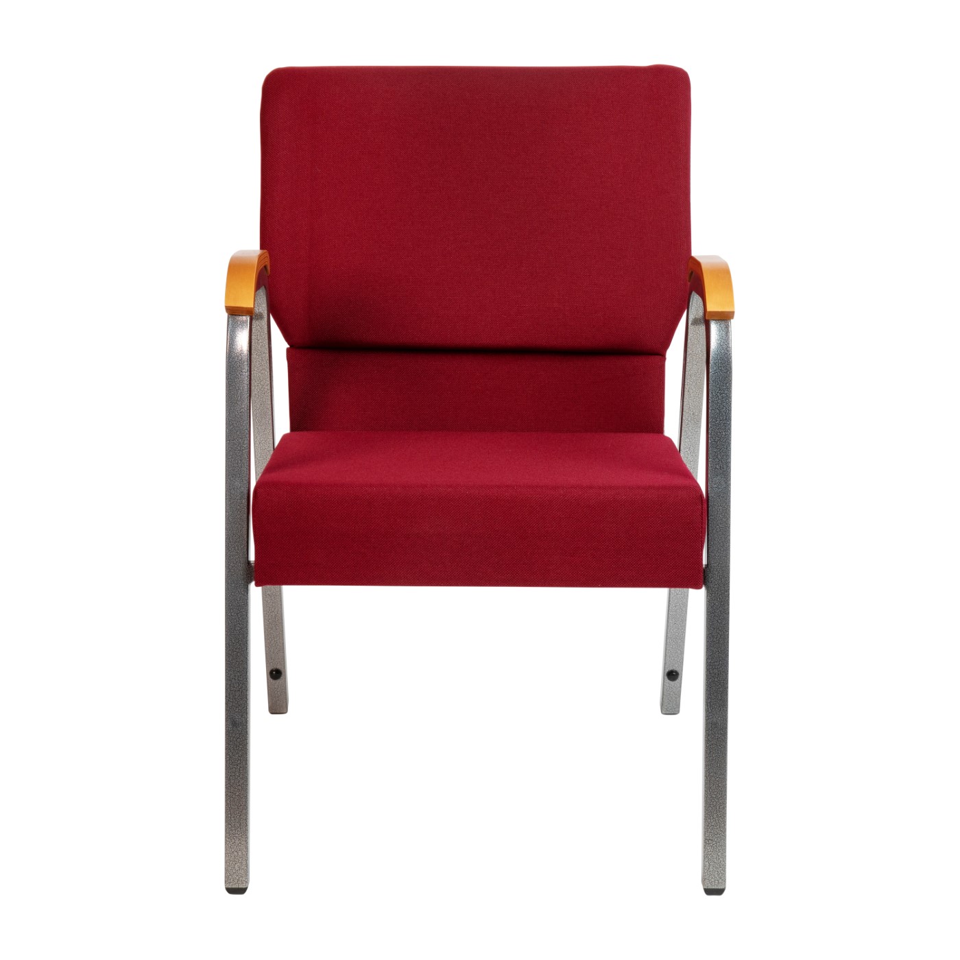 TOUGH ENOUGH SERIES 21"W STACKING WOOD ACCENT ARM CHURCH CHAIR IN BURGUNDY FABRIC - SILVER VEIN FRAME FREE SHIPPING!