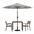5 PIECE OUTDOOR PATIO TABLE SET WITH 2 SYNTHETIC TEAK STACKABLE CHAIRS, 35" SQUARE TABLE, GRAY UMBRELLA & BASE FREE SHIPPING!