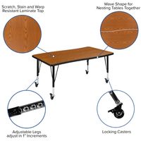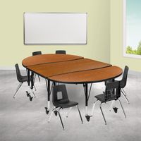 MOBILE 76" OVAL WAVE FLEXIBLE LAMINATE ACTIVITY TABLE SET WITH 12" STUDENT STACK CHAIRS, OAK/BLACK